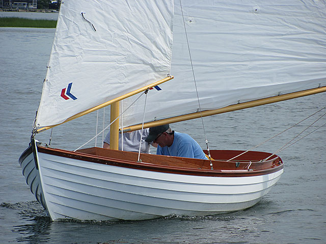 Skyla is our interpretation of John Brooks' Somes Sound 12-1/2 design, which was derived from the well-known Herreshoff 12-1/2 foot Buzzards Bay Boy's Boat and Joel White's Haven 12-1/2. She is of glued-lap marine plywood construction which makes her stiff and relatively light, while her traditional trim and joinery give her the appearance of a classic daysailer. Her owner, who sailed a Herreshoff 12-1/2 as a young man, reports that her performance is exceptional and that she draws smiles and compliments wherever she goes.